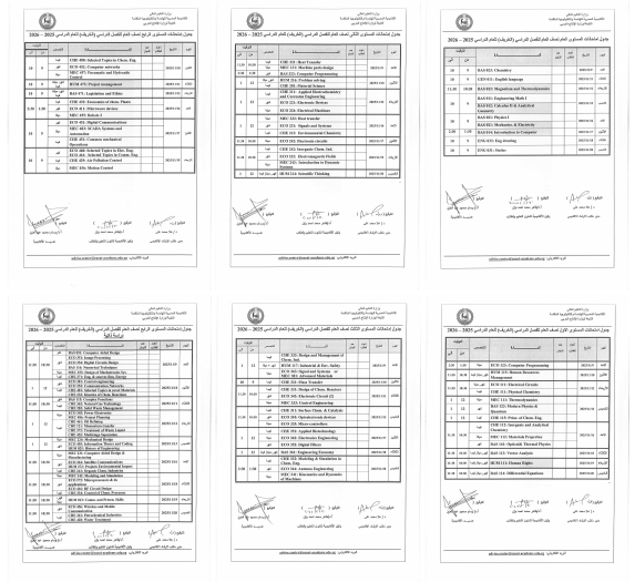 جدول امتحانات نصف الفصل الدراسى الخريف 2026/2025
