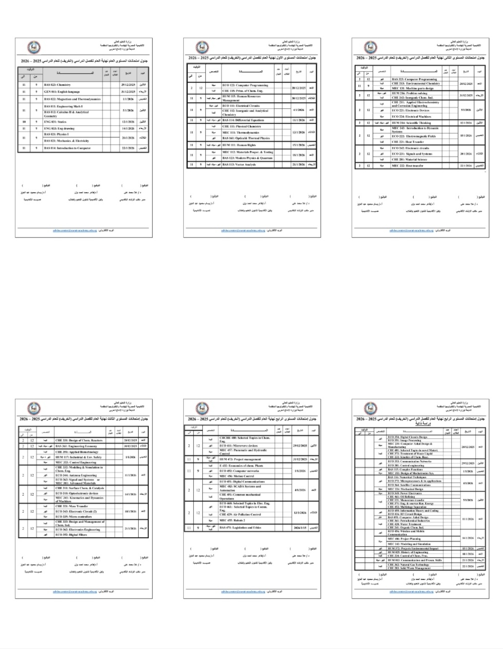 مقترح جدول امتحانات الفصل الدراسى الخريف by علا محمد على الفرن _It Unit - Friday, 12 December 2025, 8:44 AM Number of replies: 0 اعلان هامأعزائى الطلاب اليكم مقترح جدول امتحانات الفصل الدراسى الخريف 2026/2025وعلى من يرغب فى تبديل موعد مقرر التقدم بطلب جماعي لمكتب دعم الطلاب (SSO) و ذلك قبل يوم الاثنين 15/12/2025 Final Fall 25-26الوان.pdf Permalink