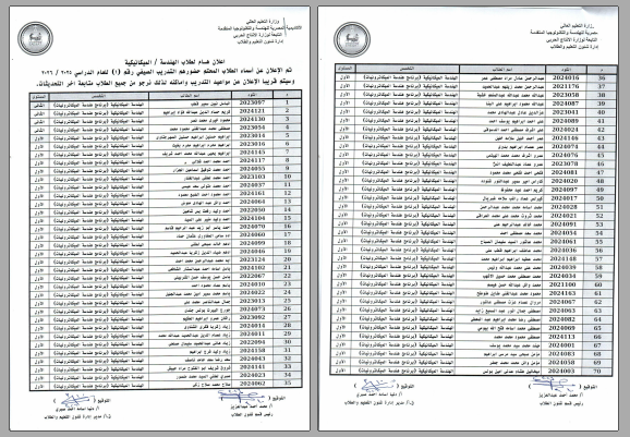 التدريب الصيفي للعام الدراسي 2025-2026 by علا محمد على الفرن _It Unit - Thursday, 12 March 2026, 9:06 AM Number of replies: 0 اعلان هاممرفق اسماء الطلاب المحتم حضورهم التدريب الصيفي للعام الدراسي 2025-2026 و سيتم قريبا الاهلان عن مواعيد التدريب و اماكنه لذلك نرجو من جميع الطلاب متابعة اخر التحديثات التدريب الصيفي 2025-2026.pdf Permalink